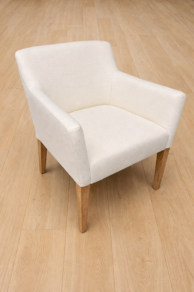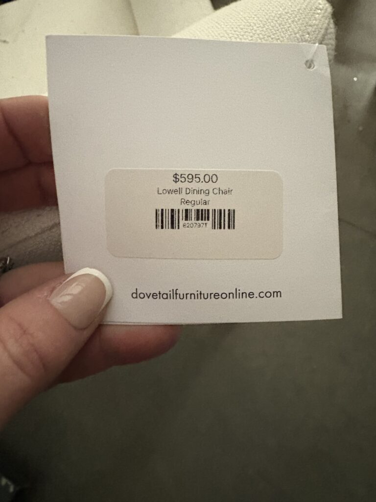 Sourced directly from a designer showroom, this chair is brand new with original tags still attached. The performance fabric is designed for everyday living while maintaining a polished, elevated look — ideal for homes that value both style and function.